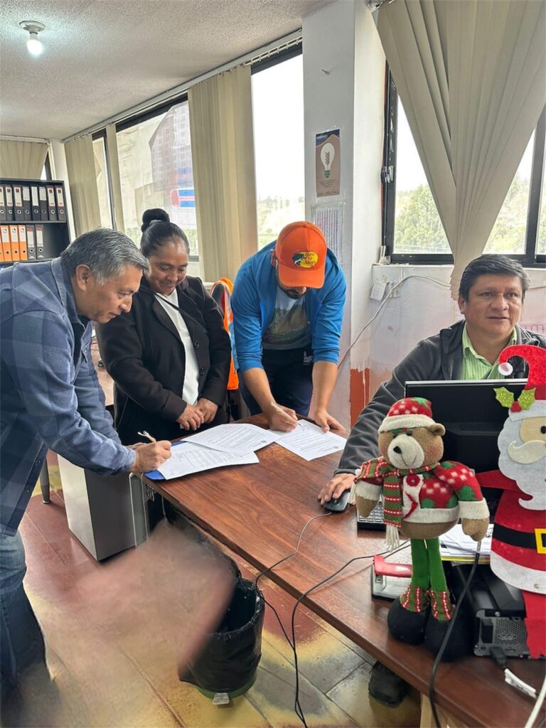 Firma de proyecto de la construcción del sistema de alcantarillado (Comunidad Cuicuno, Barrio Santa Ana, Barrio 12 de Octubre)