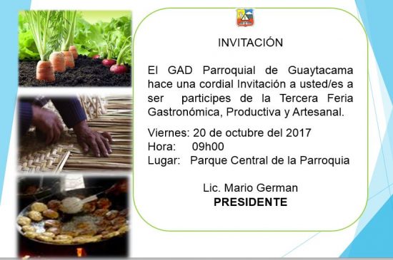 TERCERA FERIA ARTESANAL GASTRONOMICA Y PRODUCTIVA GUAYTACAMA 2017